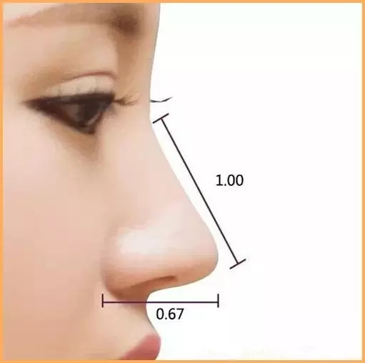 理想的外鼻长度,为面部长度的1/3,鼻头一般6~7.5厘米,鼻子长度与鼻头比例呈1:0.67。