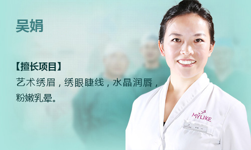 吴娟从事艺术纹绣10余年,中国娴熟纹绣师之一;曾多次受邀担任美容纹饰大赛、PCD纹绣大赛评委等多个纹绣专业比赛评委;世界纹绣艺术交流组织中国区特约成员、2015中国纹饰艺术大赛全能医生;是当今业界颇具影响力的纹绣艺术大师,塑造过很多成功纹绣案例。