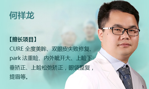 何祥龙医生一直从事医学美容临床工作,主攻眼部美眸塑造,深入研究分析东方人群眼部美学,有扎实的眼部美学功底和丰富的临床经验。何祥龙医生擅长美眸个性 化定制,凭借在眼部美学整形领域的深入研究和多次赴韩学术交流经验,其眼部改良韩式PARK法,以自然灵动,睫毛翘卷的深得韩国明星御用眼部整形大师 郑祥奎教授的称赞。多次受邀参加国内外重要学术交流会,将较新美学理念渗入美眸定制领域,深受求美者的好评和赞誉。