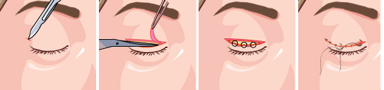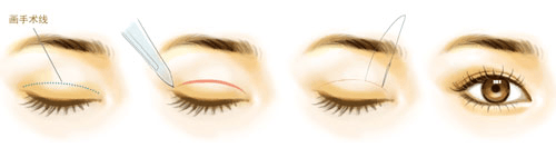 埋线法:无需切开,通过缝合方式,将线结埋于皮肤与睑板之间,存留,粘连比较牢固,自然,恢复期短,颇受欢迎。此方法操作简便,创伤小,痕,消肿快,不需拆线,比较适合年轻人、眼皮较薄、眼裂长,亦无皮肤松弛的情况。