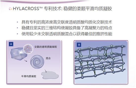 世界独有的HYLACROSS专利技术,产生单相不含颗粒的均质透明质酸凝胶;畅销多个,市场份额。
