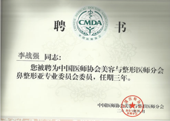 2011年8月李战强当选为中国医师协会美容与整形外科医师分会鼻整形亚专业委员会委员。